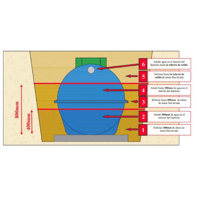 La Depuradora Biológica de Oxidación Total de 15 Habitantes es un sistema compacto y eficiente para el tratamiento de aguas residuales domésticas, aguas negras y fecales. Fabricada en PRFV (Poliéster Reforzado con Fibra de Vidrio), garantiza resistencia, durabilidad y un alto nivel de depuración conforme a las normativas europeas EN 12566-3:2006+A2:2013 y al Real Decreto 606/2003.