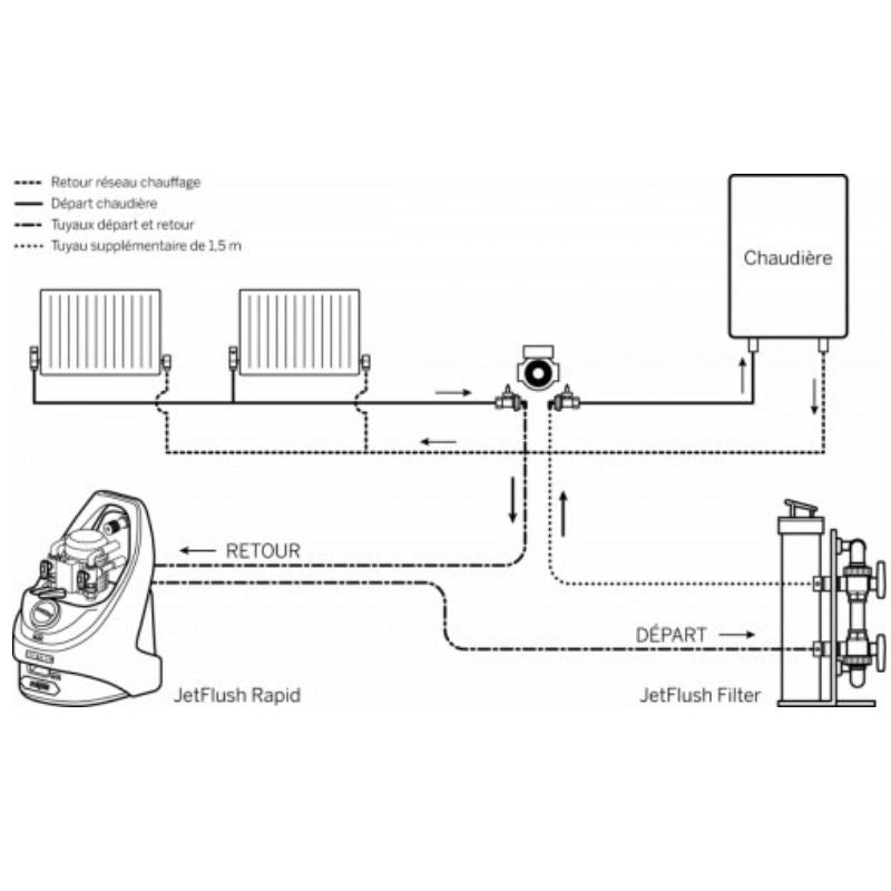 - Conexión de bomba de lavado profesional JetFlush Rapid®: equipo de alto caudal y pulsos alternos para circuitos complejos.